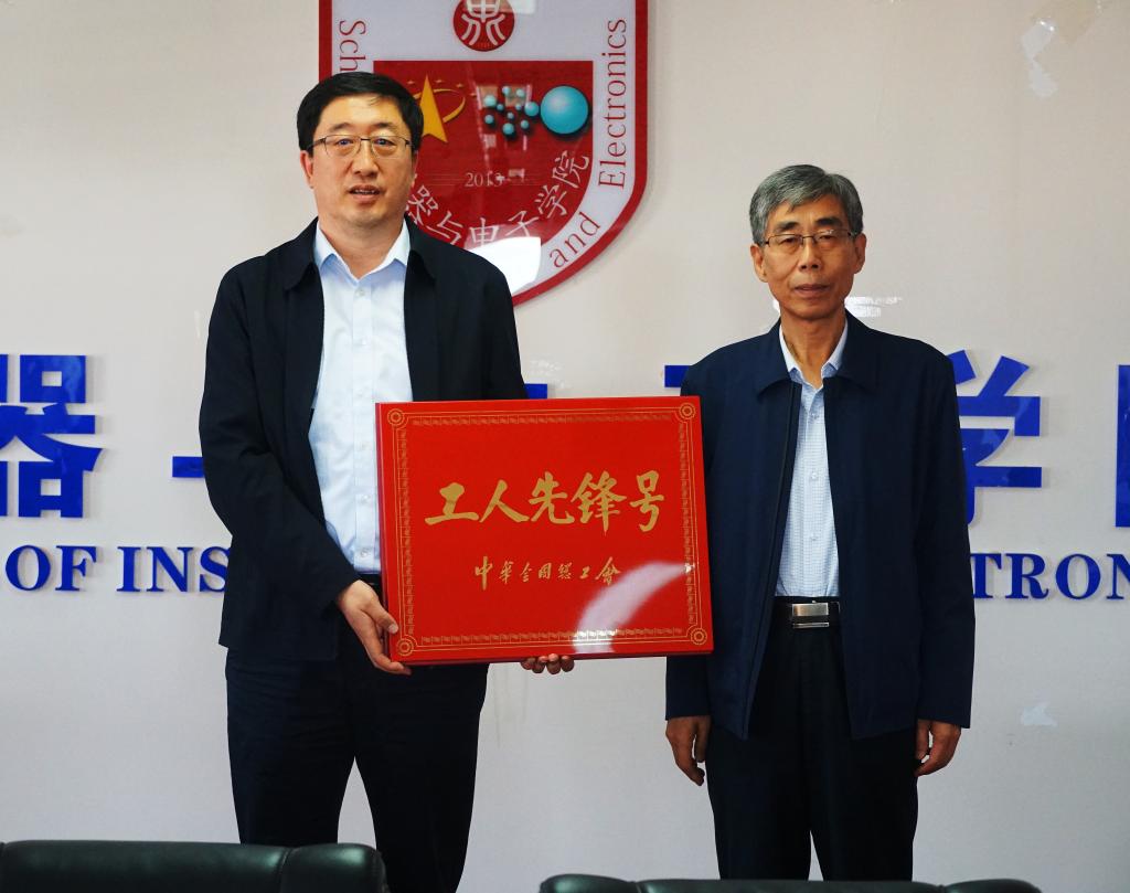 五一国际劳动节来临之际,中华全国总工会发出关于表彰2021年全国五一劳动奖和全国工人先锋号的决定,我校仪器与电子学院获得“全国工人先锋号”荣誉称号。5月11日,山西省教科文卫体工会主席张建平来校颁发“全国工人先锋号”奖牌。校党委副书记薛智出席仪式。副校长刘俊代表学校接受奖牌。