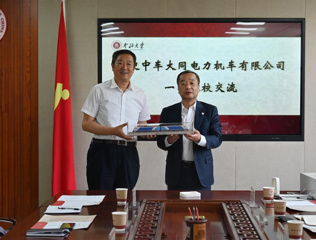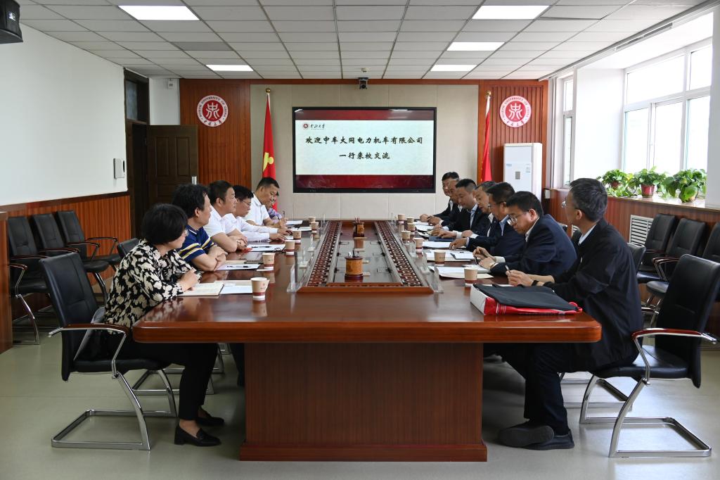 5月28日上午,中车大同电力机车有限公司董事长、党委书记黄启超及副总经理兼总工程师赵明元一行来校调研交流。副校长李东光出席座谈会。党办校办、科学技术研究院、电气与控制工程学院负责人参加了座谈会。