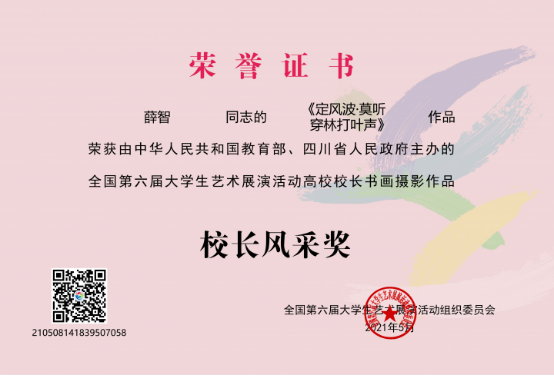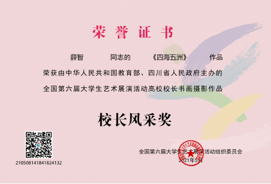近日,全国第六届大学生艺术展演活动在成都落下帷幕。我校报送《定风波·莫听穿林打叶声》《四海五洲》等作品与全国198所高校的264支代表队进行激烈角逐,斩获校长风采奖、一等奖等8项全国大奖,实现了我校在全国大学生艺术展演活动多个项目上零的突破。我校获高校优秀组织奖。校党委副书记薛智的书法作品《定风波·莫听穿林打叶声》《四海五洲》荣获校长风采奖;武敏指导、高群同学的艺术设计作品《新诺亚方舟》荣获艺术作品乙组一等奖;张鹏、武敏、王燕平指导的《“心视界”VR艺术工作坊》项目荣获艺术实践工作坊二等奖;任雅静、孙哲元、顾宁指导的舞蹈节目《奋进·似火年华》荣获艺术表演类甲组三等奖;王燕平、刘维佳、王帅指导的声乐节目《天下黄河九十九道湾》《亲圪蛋下河洗衣裳》荣获艺术表演类乙组三等奖;范晓荣的案例《高校音乐教育专业美育课程建设及教学改革—培养中小学音乐教师的路径探索》荣获高校美育改革创新优秀案例。