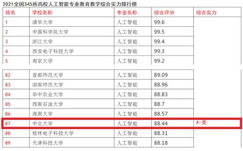 近日,全国高校人工智能与大数据创新联盟公布了“人工智能”专业教育教学综合实力排行榜。我校“人工智能”专业综合实力达到A-(前26%,87/345),居山西高校之首。