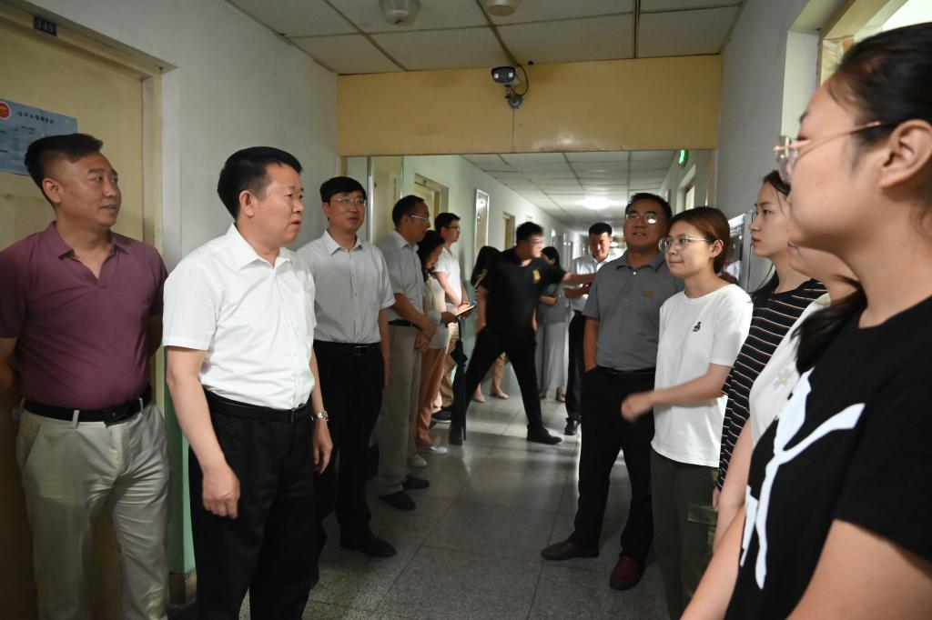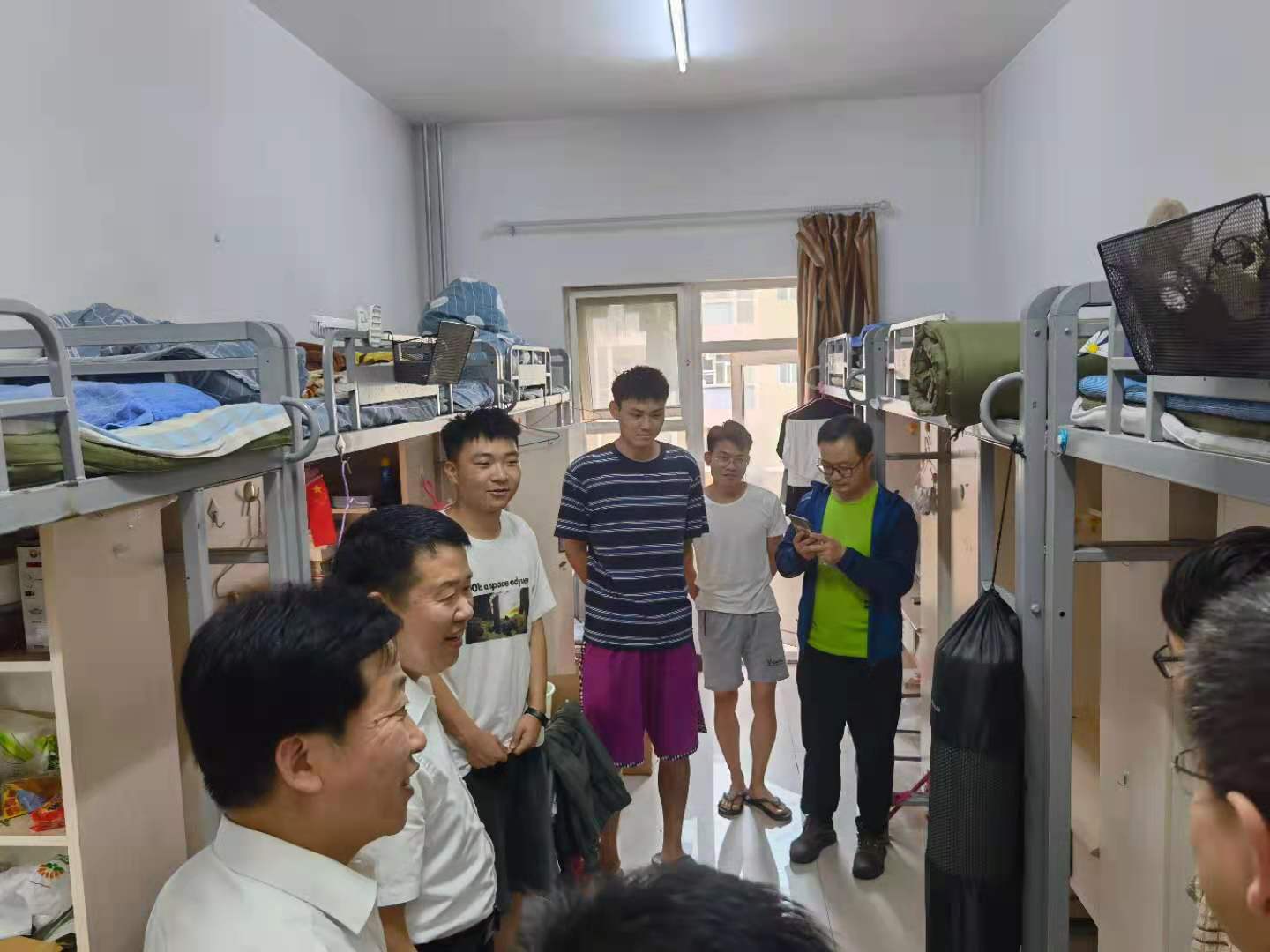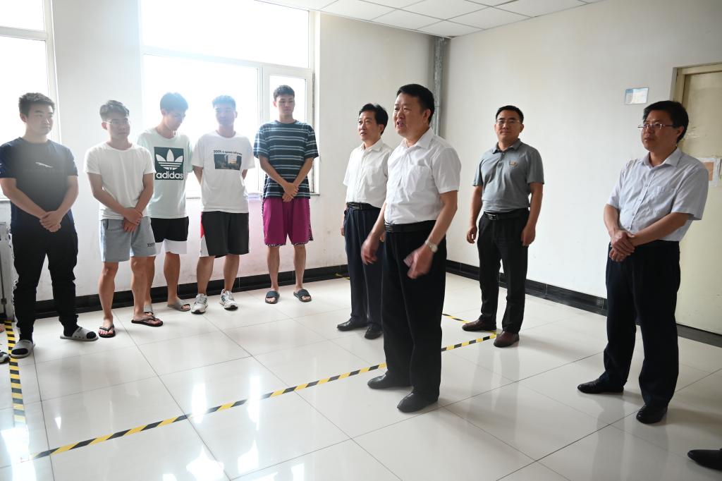 在毕业生宿舍,沈兴全、雷锋斌详细询问大家毕业答辩情况、考研就业情况及未来规划,希望同学们在离校期间,遇到问题和困难,要及时找班主任、辅导员沟通,或向学院反映情况,寻求帮助解决,确保顺利、按时离校。沈兴全表示,目前疫情尚未完全结束,学校牵挂每一位毕业生离校返家途中的安全,目前已安排大巴为大家提供免费送站服务,叮嘱同学们一定确保自身安全,做好个人防护。同时希望大家步入社会后,不忘“致知于行”的校训,继续发扬中北人脚踏实地、吃苦耐劳的作风和精神,将自己大学期间学到的科学文化知识和养成的良好品质与自己未来学习、工作相结合,常怀感恩之心,不忘回报母校。