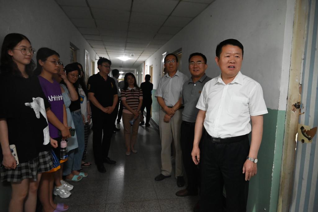 6月16日,校党委书记沈兴全、校党委副书记雷锋斌来到怡丁苑、文韬学生宿舍看望慰问即将离校的毕业生。
