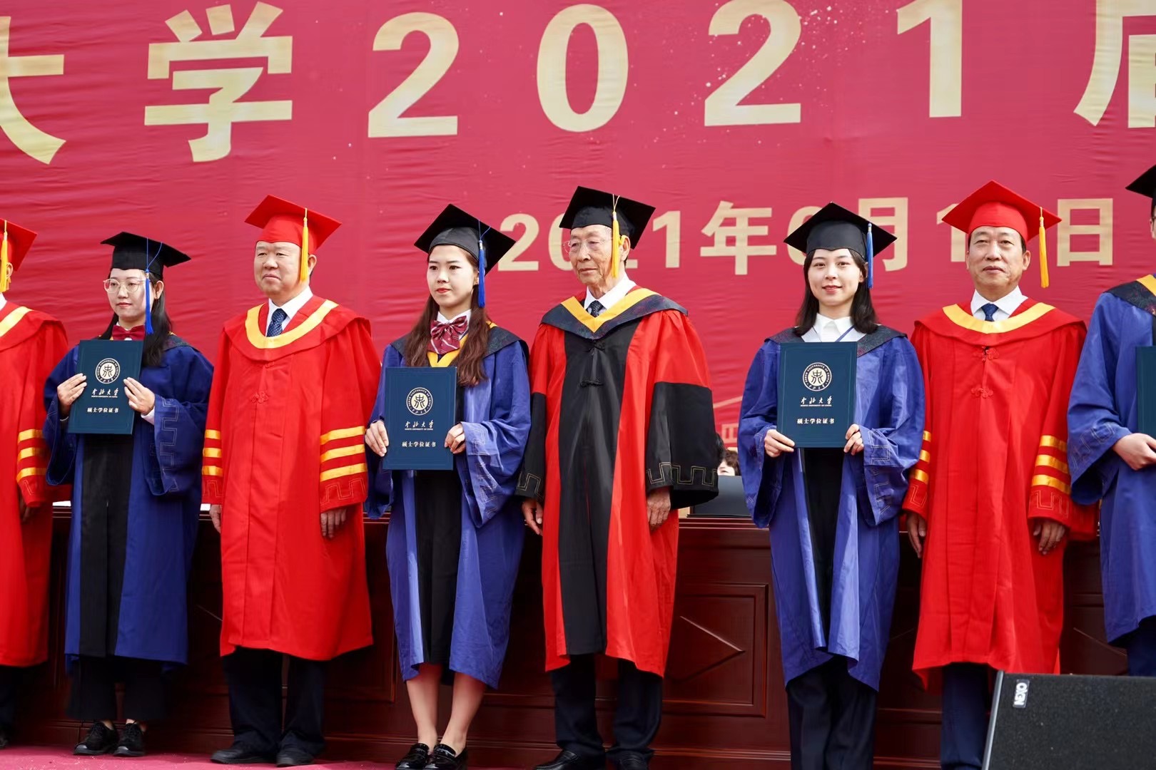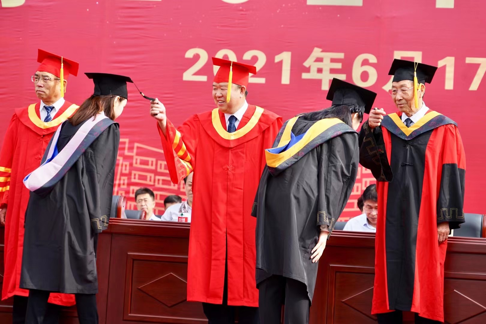 大会首先宣布了《中北大学关于拟授予2021届毕业生学位的决定》《中北大学关于表彰2021届优秀毕业生的决定》。今年我校共有博士、硕士、本科毕业学生9812名。其中,授予55名学生博士学位、1241名学生硕士学位、8438名学生学士学位;2290名同学光荣加入了中国共产党;202名同学获得“优秀毕业生”称号;2372名同学考取硕士、博士研究生;2832人次获得了国家级和省级各类学科竞赛奖项。主席台领导和嘉宾为毕业生代表正冠拨苏、颁发学位证书,为优秀毕业生代表颁发获奖证书。