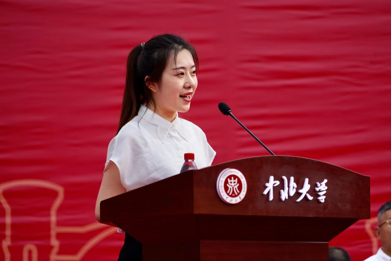 优秀毕业生代表、经济与管理学院孙华伟发言分享了大学四年学习成长的经验与感悟。并表示,“致知于行”是每个中北人永远的精神品格。作为新时代青年大学生,要做富有智慧而勇于担当、充满激情而敢于创新、手握命运而心怀国家的人,在全国各地,继续绽放光彩,实现梦想。
