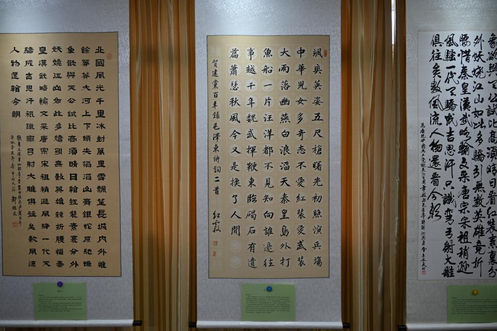 本次展出的作品有描写黄洋界保卫战、歌颂井冈山将士坚守根据地英勇斗争精神的《西江月·井冈山》,有回顾长征所战胜的无数艰难险阻,表达满怀喜悦的战斗豪情的《七律·长征》,有表达对祖国壮丽河山的热爱,抒发无产阶级要做世界真正主人豪情壮志的《沁园春·雪》,有描绘北戴河壮阔的场景和渔民出海的情形,热情歌颂新时代新生活的《浪淘沙·北戴河》……伟大的革命领袖毛泽东同志的诗作记录了中国共产党带领中国人民站起来、富起来、强起来的历史性飞跃。毛主席的每一首诗词,都是一段浓缩的历史,一份精神的传承,音诗画展通过音乐、诗歌、书画的形式抒发对党和人民的无限热爱,对实现中华民族伟大复兴中国梦的坚定信心,表达了对毛泽东同志的缅怀之情,对中国共产党百年华诞的深切祝福。