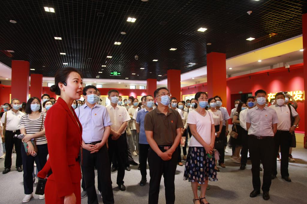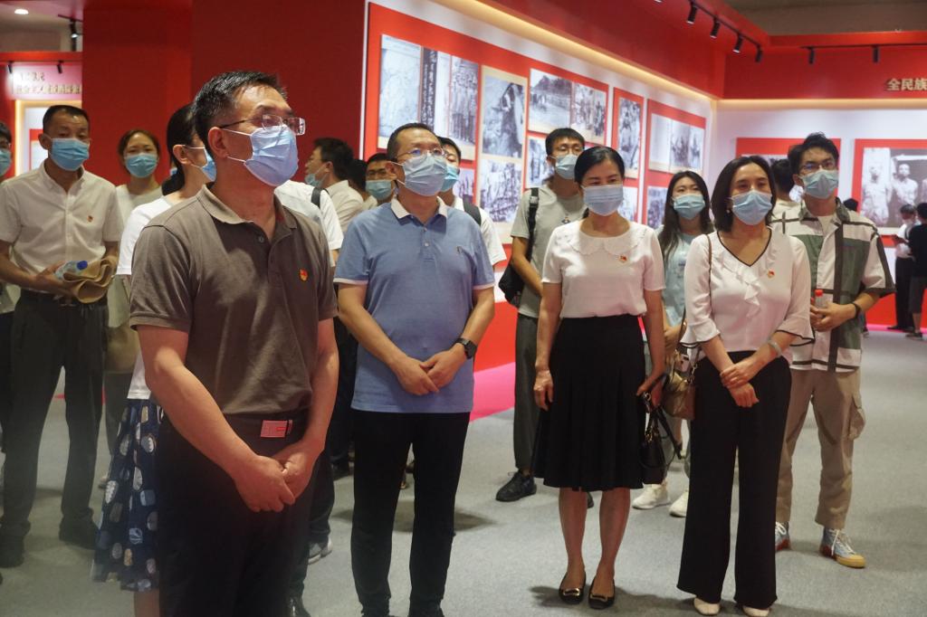沿着展厅路线,薛智和师生们驻足观看,认真听取讲解,详细了解有关史实,交流心得体会,共同感悟中国共产党人砥砺奋进的初心和使命。