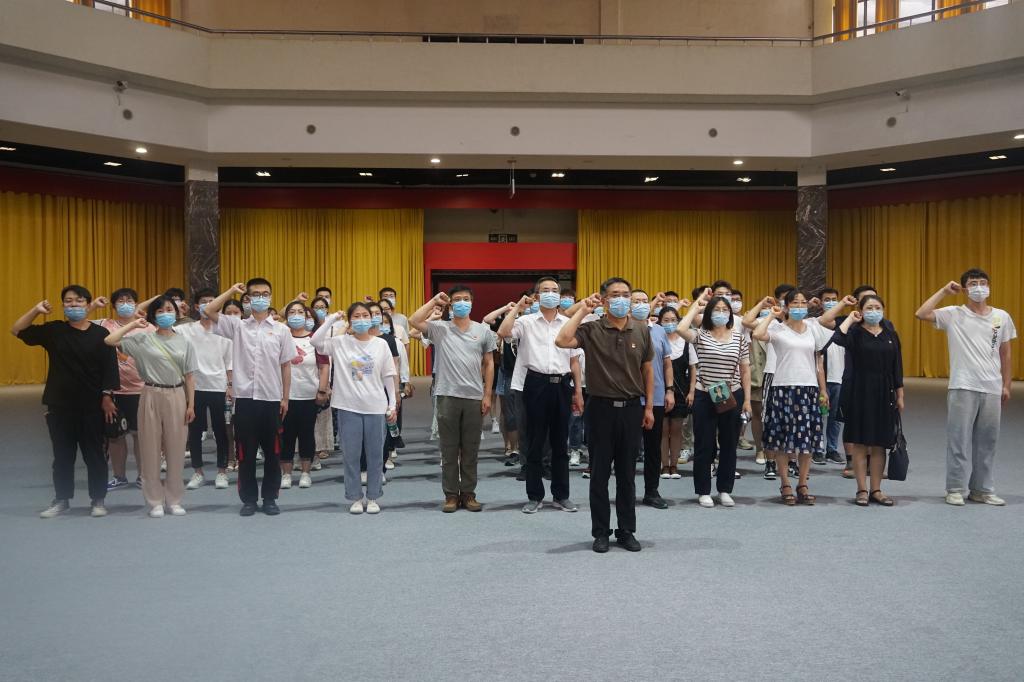 参观结束后,薛智带领全体师生党员重温了入党誓词。