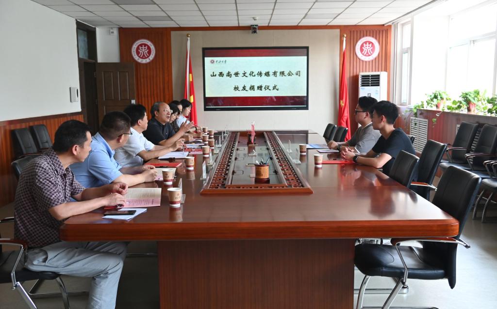 7月5日,山西尚世文化传媒有限公司执行董事、仪器与电子学院2021届校友尚琳琳代表企业向母校捐赠“校园VR智慧展示信息一体化系统”。校党委副书记雷锋斌代表学校接受捐赠。校党委宣传部部长薛实军主持仪式。校友办、仪器与电子学院、人文社会科学学院、艺术学院等相关部门、学院负责人和教师代表参加了仪式。