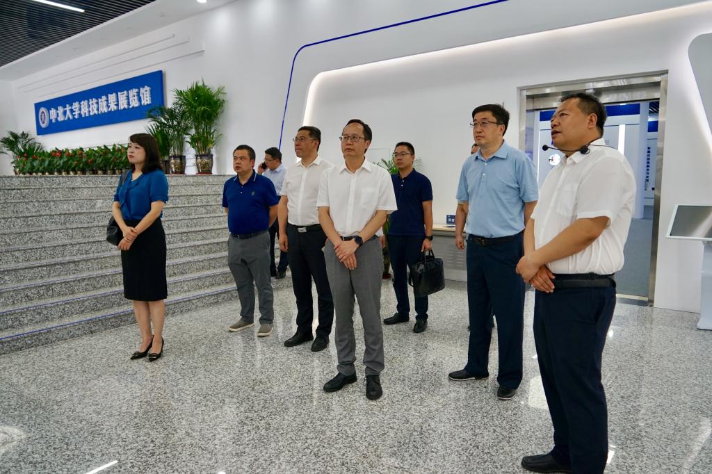 座谈会前,张健一行在刘俊副校长陪同下,参观了我校科技成果展。
