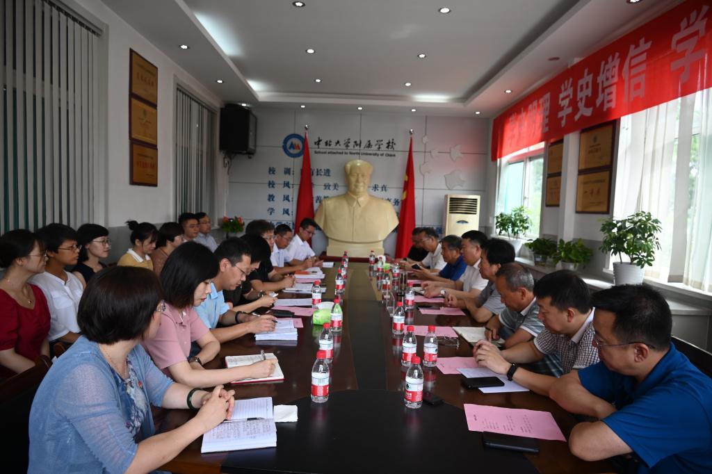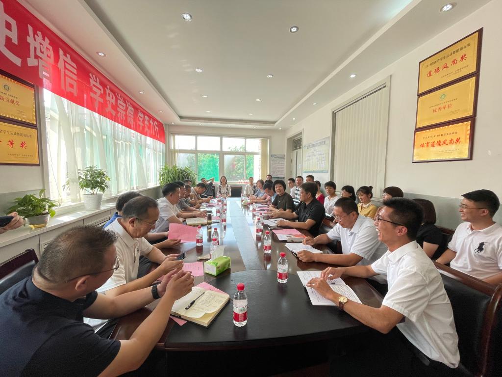 7月29日上午,校党委书记沈兴全、党委副书记雷锋斌、副校长曾建潮带领人力资源管理处、后勤管理处、安全保卫部(处)、信息化建设与管理处、团委等相关职能部门负责人就推进附属学校建设发展进行座谈。附属学校班子成员以及2021届、2022届毕业班教师参加座谈。