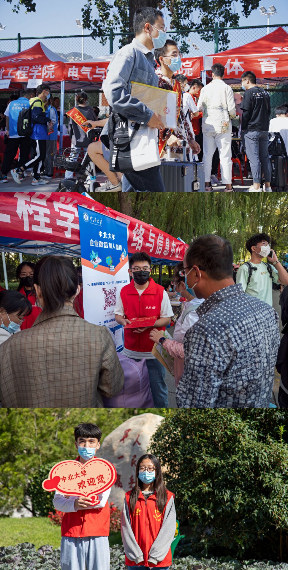 一张张热情的笑脸,一句句亲切的问候,一项项贴心的服务,欢迎着来自祖国各地的莘莘学子。全体迎新工作人员以热情周到的服务圆满完成了2021年迎新工作。2021级新生的大学生活随之开启。希望每一位中北新成员在未来四年的大学生活中元气满满,敢为人先,奋勇向前。