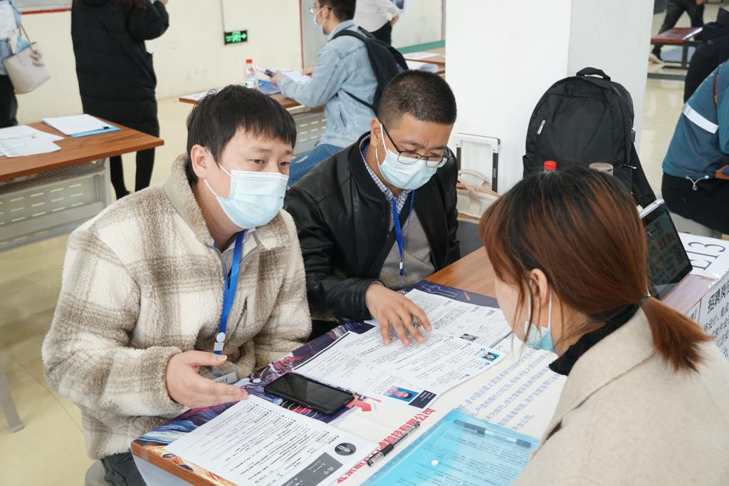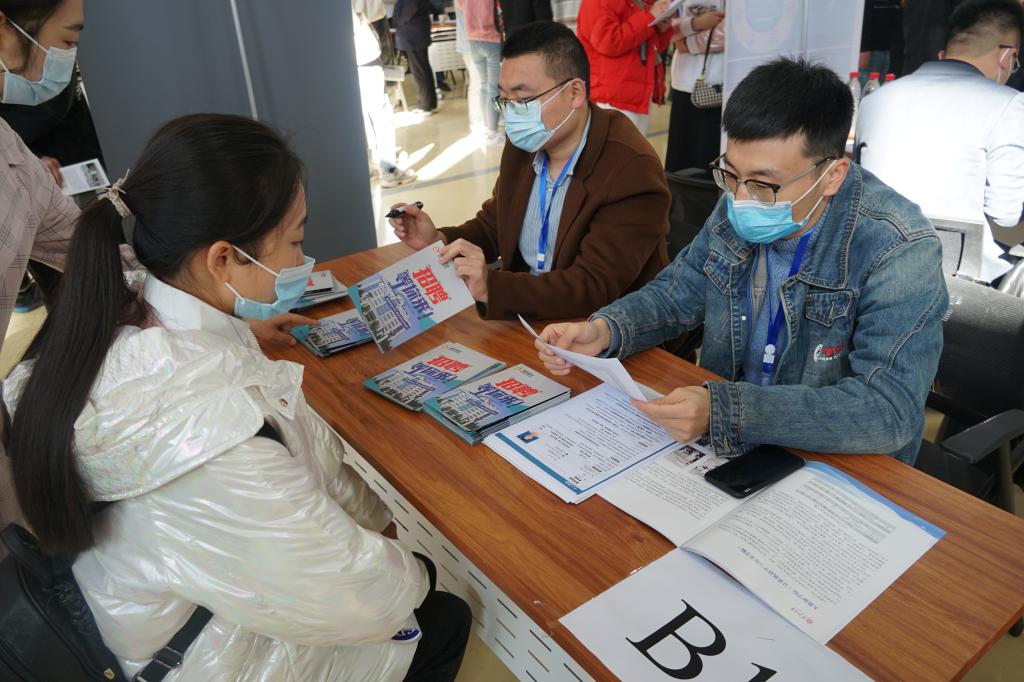 双选会现场秩序井然,各个企业的展位面前排满了踊跃投递简历、等待面试的毕业生们,学生积极主动与企业进行交流协商,部分有意向的同学与企业现场签订了就业协议。截止发稿前,现场签约人数为42人。