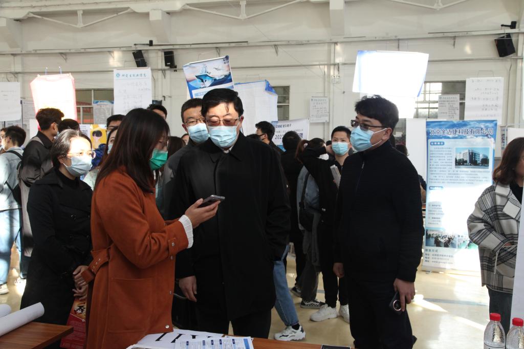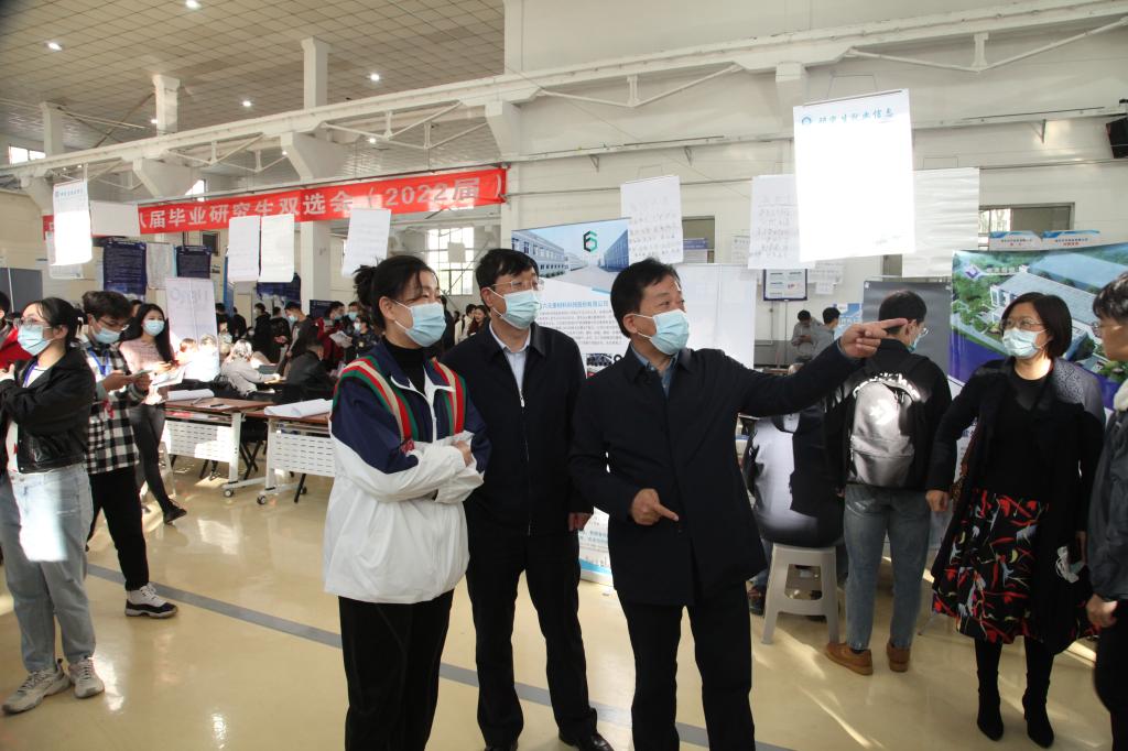 校党委副书记雷锋斌、副校长刘俊到场指导工作并慰问现场工作人员。招聘现场,校领导与用人单位进行深入交流,了解其需求情况,并与应聘毕业生亲切交谈,询问求职的进展及目前存在的困惑,并鼓励毕业生要主动应聘、积极就业。