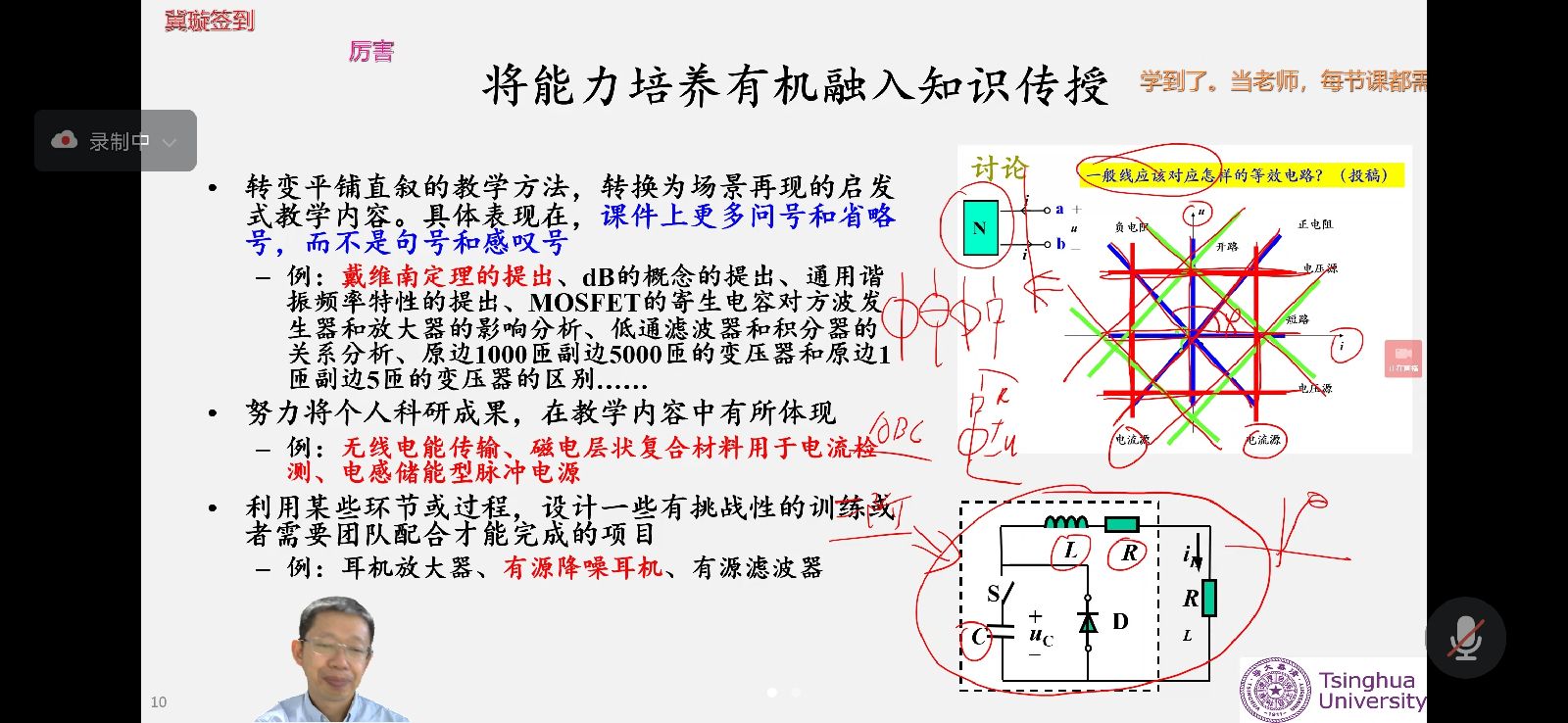 作为教育部高校在线教学国际平台与课程建设专家顾问组副组长及高等学校工科基础课程教指委秘书长、国家级精品在线开放课程《电路原理》负责人,于歆杰以《课程思政是什么?怎么做?》为题,分享了《电路原理》课程在课程思政建设中的经验。他强调,课堂教学中,不仅要传授知识,更要传递正能量,身教大于言传,教师要努力做一名“真人”,讲好中国故事、人类故事、人生故事,恰当运用反面故事;要精心设计每一堂课,建构知识重新再发现的教学场景,引导学生树立正确的人生观、价值观和世界观。