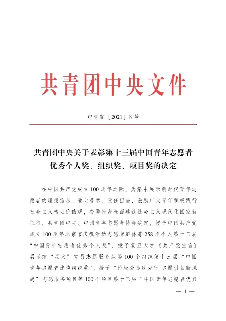 在第36个国际志愿者日来临之际,共青团中央、中国青年志愿者协会联合开展第十三届中国青年志愿者优秀组织个人奖评选活动,经过个人申报、单位推荐、省级推荐提名、评委会评选、社会公示等环节,我校大数据学院蔡奕明同学荣获第十三届“中国青年志愿者优秀个人奖”,这是2021年我省唯一一个青年学生获此奖项。