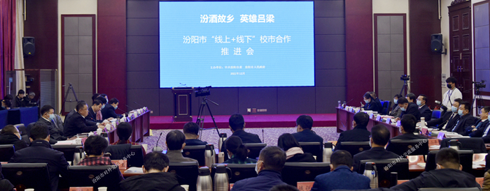 12月15日,校党委书记沈兴全、副校长李东光代表学校出席汾阳市举办的“线上+线下”校市合作推进会。确保疫情防控的前提下,汾阳市通过“线上”拜会北京大学、清华大学、北京邮电大学,“线下”邀请省内太原理工大学、山西大学、山西财经大学、山西师范大学、山西农业大学、山西医科大学、太原科技大学等12所高校领导参加“线上+线下”校市合作推进会,进一步推介汾阳优势和人才政策,以“人才洼地”打造“发展高地”。各参会高校分别与汾阳市签署了战略性合作框架协议。李东光与汾阳市委副书记、市长李正奎分别代表校地双方签署了协议。
