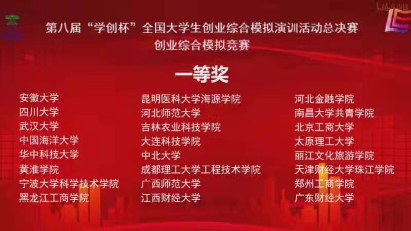 “学创杯”全国大学生创业综合模拟大赛由教育部高等学校国家级实验教学示范中心联席会主办,已持续举办八届。本项赛事已列入中国高等教育学会全国普通高校大学生竞赛排行榜,目前已成为一级赛事。 本届大赛吸引了包含北京大学、武汉大学、华中科技大学等1075所高校、超过3万支队伍、15万名师生参与。经过校赛和省赛层层角逐,最终有200余所院校晋级全国总决赛。总决赛因疫情防控需要,采用线上方式进行。大赛旨在激励大学生弘扬时代精神,培养创业意识,提高创业能力,促进高校就业创业教育的蓬勃开展,发现和培养具有创新思维和创业潜力的优秀人才。