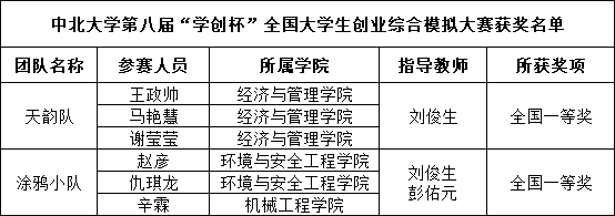 12月11日,第八届“学创杯”全国大学生创业综合大赛全国总决赛落下帷幕。经过激烈角逐,我校共获得全国总决赛一等奖2项,其中“天韵”代表队获创业综合模拟竞赛一等奖、“涂鸦小队”代表队获创业营销专项赛一等奖。这是我校学子首次在这一全国性赛事中斩获佳绩。大赛成绩居山西高校首位。
