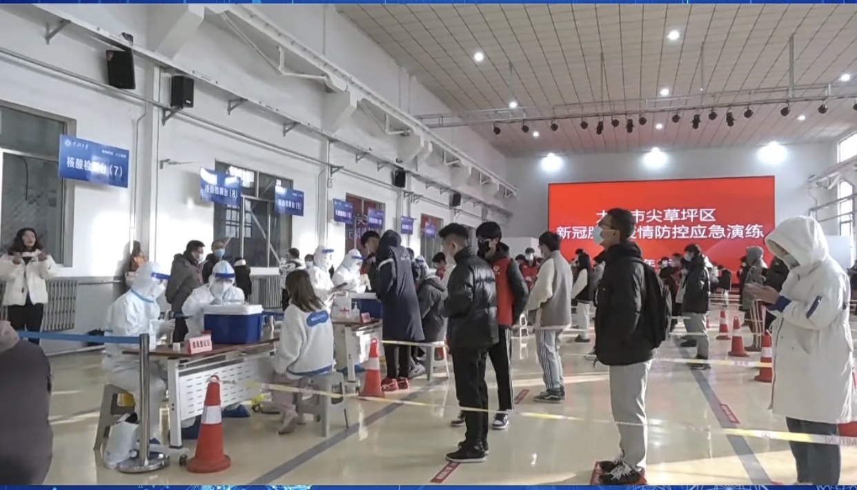 为有效应对新冠肺炎疫情,进一步提升学校新冠核酸检测组织实施能力,1月8日,按照尖草坪区部署安排,我校在东区训练馆组织开展大规模全员核酸检测全流程应急演练。校党委书记沈兴全、副校长蔡江辉,尖草坪区区委书记刘锦春、区长张力维亲临现场指导演练工作。尖草坪区相关单位负责人,我校疫情防控办公室、校医院、后勤管理处、学生工作部(处)、安全保卫处等相关部门工作人员到场协同配合工作。我校11个学院师生代表、后勤人员代表等2000余人参加了演练。