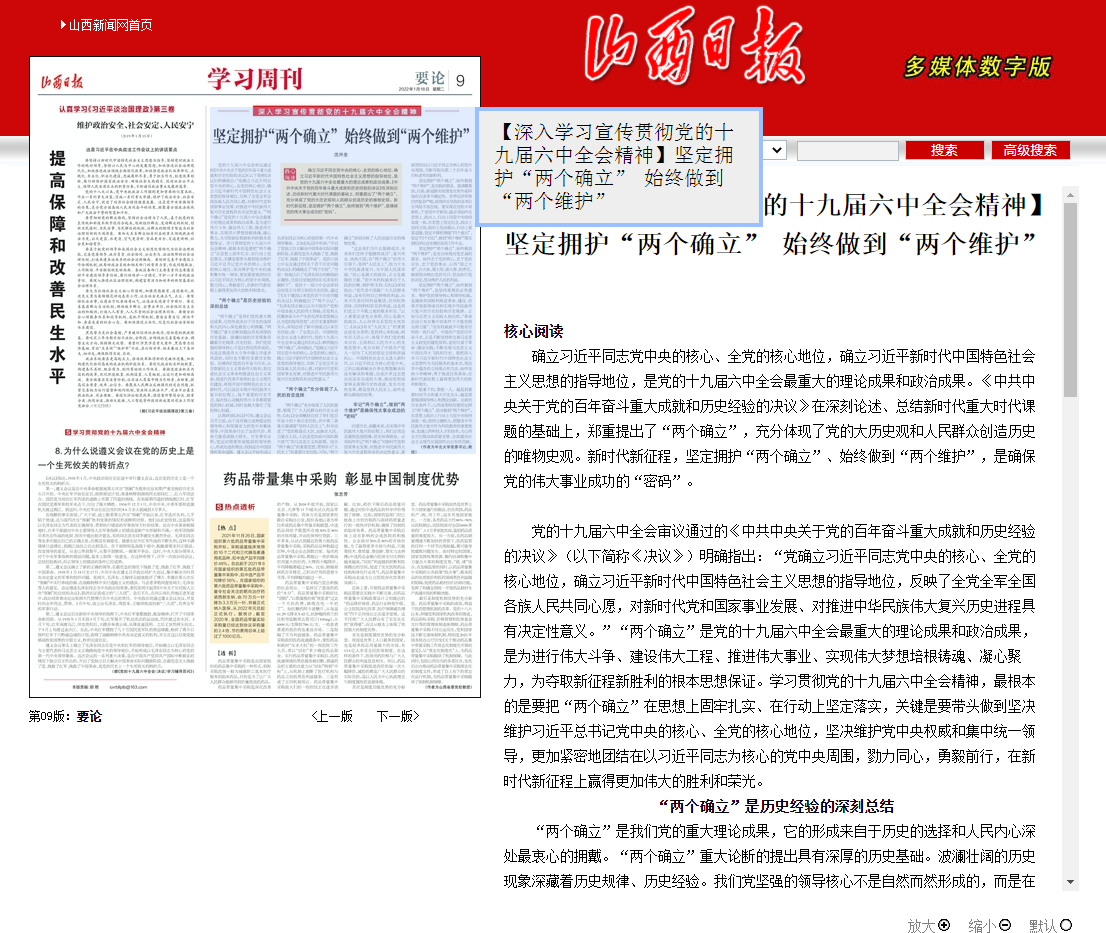 1月18日,《山西日报》学习周刊要论版全文发表了我校党委书记沈兴全署名文章《坚定拥护“两个确立” 始终做到“两个维护”》。