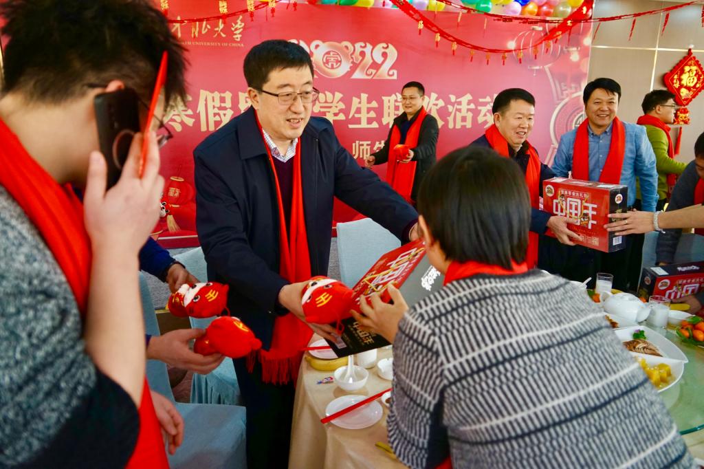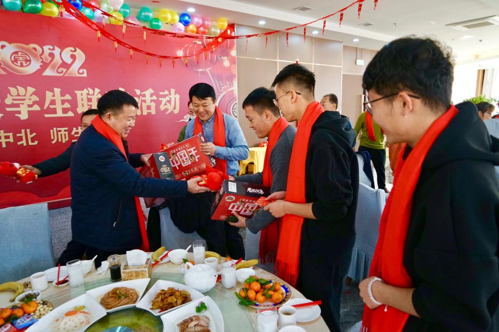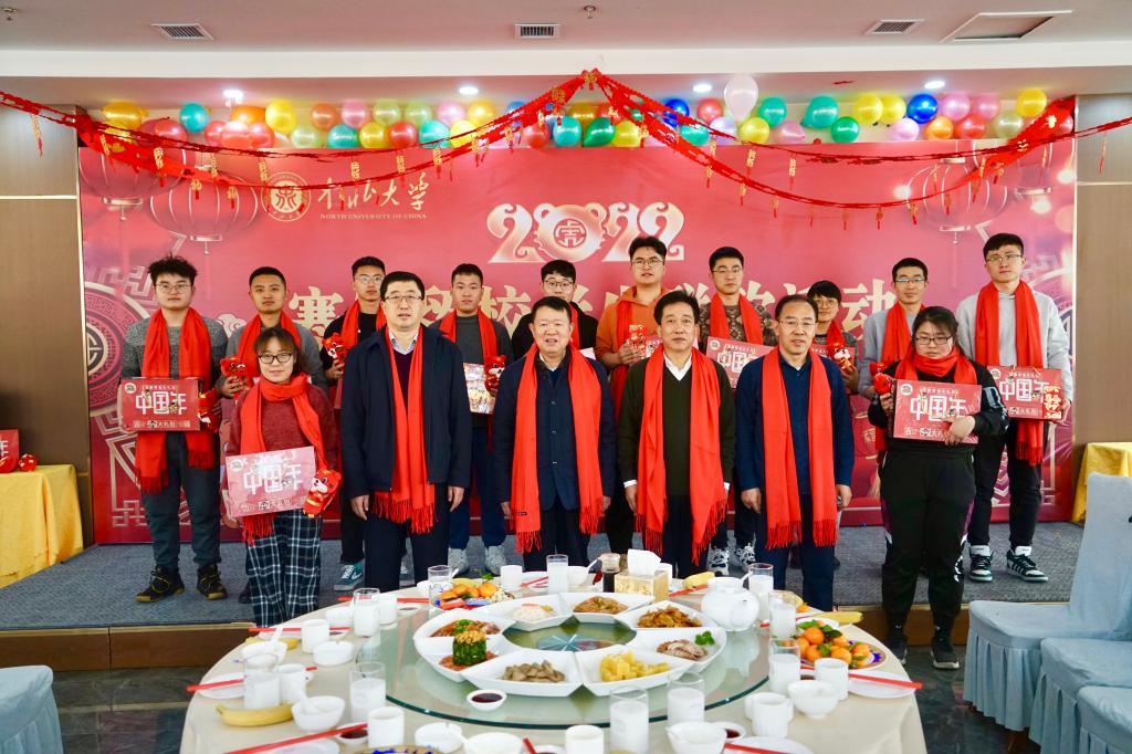 温馨中北,师爱无疆!今年春节,由于疫情防控、个人学习和科研实验安排等方面原因,我校有数十名学生留在学校不能与家人团聚。为让他们在学校感受到家一般的温暖,1月31日,农历除夕,我校在龙泉宴会厅举行寒假留校学生迎新春联欢活动。校领导沈兴全、雷锋斌、苏铁熊、刘俊及相关部门、各学院负责人与留校学生欢聚一堂,共庆佳节,同迎新春。联欢活动由学生工作部部长李俊华主持。