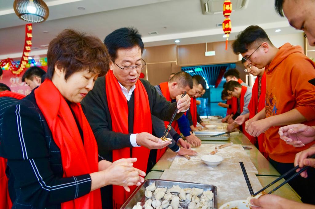活动现场欢声笑语、其乐融融。彩色的拉花,吉祥的“福”字,缤纷的气球,烘托出喜庆热闹的春节氛围。校领导、老师与留校学生一起撸起袖子包饺子,无论动作熟练或是生疏,大家纷纷将祝福融进馅儿里、将团圆包进皮儿里,祝愿新一年的生活如同这饺子圆圆满满、精彩纷呈。校领导和老师们一边与学生包饺子,一边唠家常、问学业,询困难、细叮咛,一句句关心的话语、一丝丝贴心的关爱,让远离家乡的学子感受到了新年的味道、团圆的幸福和长辈的关怀。