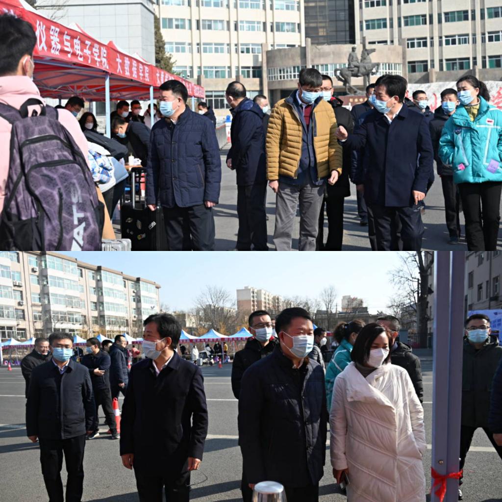 2月25日上午8时,校党委书记沈兴全、校长熊继军、校党委副书记雷锋斌、副校长蔡江辉亲临主校门外报到现场检查指导工作。