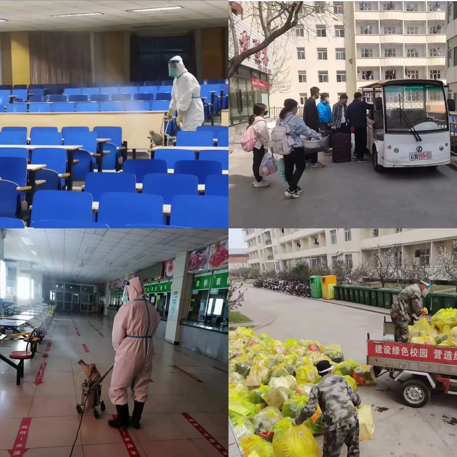 坚决提升后勤服务水平。为确保生活物资不断档,后勤管理处物流配送中心在做好物资储备的基础上,在校内设置专门的蔬菜供应点,保障校内居民蔬菜日常供应;校园绿化中心员工遵守防控工作要求,以校为家,坚持每天巡山护园,做好疫情防控期间护林防火工作,同时加班加点栽花植树,美化校园,为校内师生提供优美环境,改善师生防疫心情;学生公寓管理员、值班员始终坚守岗位,与学生同吃同住同封闭,将防疫期间学生生活垃圾称重打包并贴好标签,为学生近距离提供暖心服务;教学中心员工封闭并清理各栋教学楼,配合各学院做好研究生复试场地服务保障工作,同时积极争当社区防疫志愿者;动力维修部门保障全校24小时水电供应、维修和缴费,确保校内设施设备正常运行;物业中心每日完成清运15车、约75吨的生活垃圾,同时在隔离宿舍文韬四楼有序开展每日110余袋专项垃圾消毒和规范清运工作,保障隔离宿舍的卫生环境。同时对全校学生食堂、教学楼、宿舍区、住宅区等重要点位进行消毒消杀、保洁清运,对进楼人员做好测温打卡,公益劳动老师责任分区分片维护校园环境;铁木中心配合学校安排,搬运宿舍内床柜,在公寓楼附近加固防护栏,分离学生和家属区,努力做到精准防控。同时,后勤管理处派出8名员工前往校外隔离点,为隔离学生提供服务,让学生感受到来自学校的关怀;封控期间,由于校内后勤人员有限,虽然临时食宿环境较为艰苦,很多员工都是打地铺、睡桌子,但大家依然乐观坚强,充分发挥后勤人吃苦耐劳的精神,为师生提供尽心竭力的服务。
