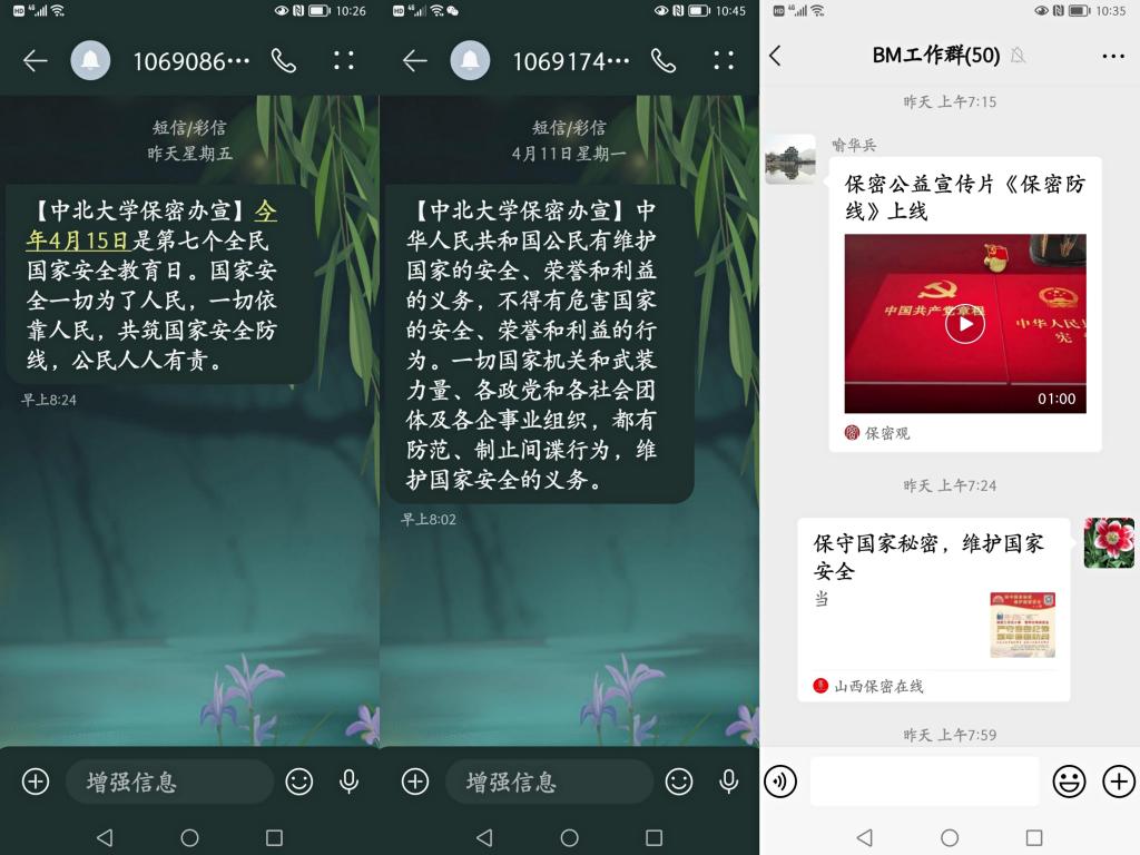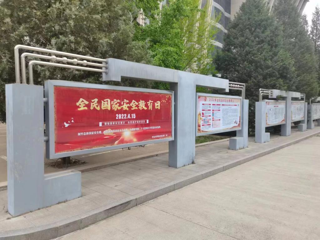 今年国家安全教育日的主题是:“树牢总体国家安全观,感悟新时代国家安全成就,为迎接党的二十大胜利召开营造良好氛围”。校党委理论学习中心组成员开展了线上主题学习活动,重点学习了习近平总书记关于坚持总体国家安全观的重要论述。党委宣传部通过“看中北”微信公众号宣传国家安全教育相关知识,引领全校师生不断强化维护国家安全的意识。安全保卫处在中央大道橱窗展出“增强国家安全意识,自觉维护国家安全”国家安全知识系列展板,在中央大道及文瀛餐厅前,悬挂国家安全宣传标语,在图书馆和生活服务大楼电子屏滚动播放国家安全宣传标语,通过中北安保微信公众号向全校师生推送国家安全相关知识。学校保密办向全校涉密人员发送保密教育短信;及时更新保密处网站保密讲堂、举案说法内容;在成员单位工作群推送保密宣传公益片,日常保密常识、国家安全日宣传海报及泄密案例。积极开展涉密人员两识教育,引导全校涉密人员树牢总体国家安全观,进一步增强涉密人员保密意识,共筑国家安全防线。