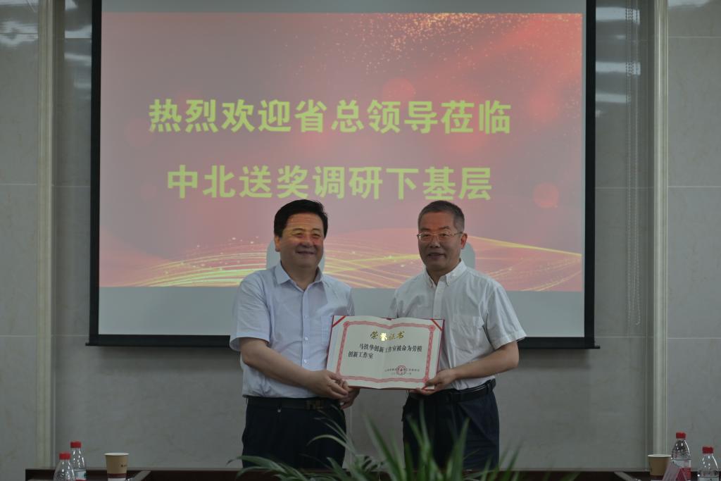 6月10日,省总工会党组成员、副主席、省教科文卫体工会主席李忠贵一行深入我校开展“送奖调研下基层”活动。李忠贵为我校在2022年度山西省五一表彰中荣获“五一劳动奖章”的赵河明教授颁发奖牌和证书,并为荣获“劳模工作室”的马铁华教授工作室授牌。副校长刘俊出席。校工会主席方和荣主持活动。