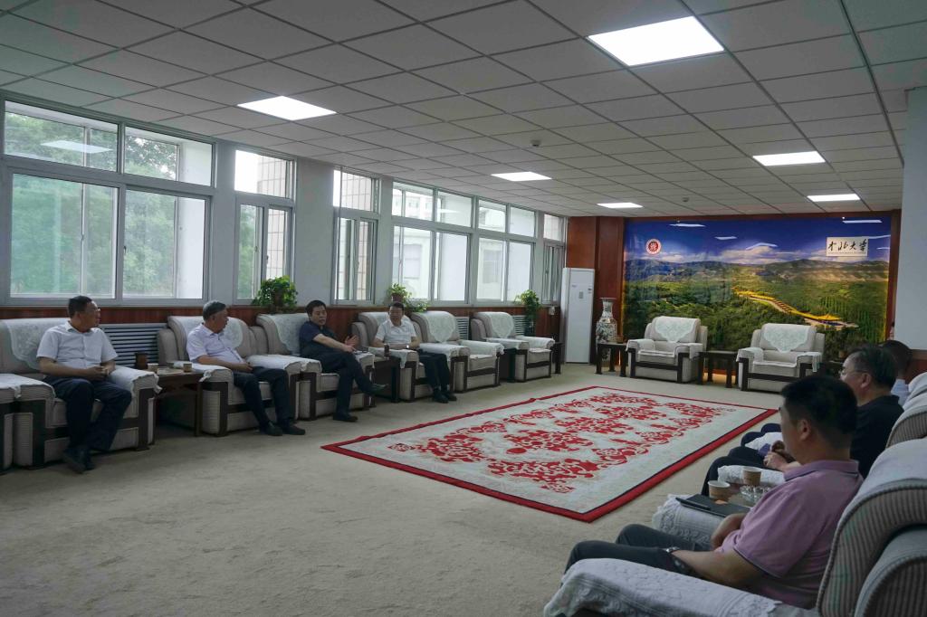 6月10日, 河北华北柴油机有限责任公司党委书记、董事长陈立钦及副总经理边四海一行来校调研。校党委书记沈兴全会见来宾。校长熊继军及副校长赵贵哲、李东光出席双方座谈会。