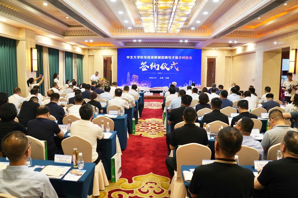 7月16日下午,中北大学校友会投资阳城招商引才推介对接会在省城太原举行。40多位中北大学校友企业家参加了推介对接活动。阳城县城乡一体化供水工程等 7个项目现场签约,总投资约77.5亿元。副校长苏铁熊,中北大学山西校友会会长杨波,阳城县委副书记、县长牛琛及副县长杨二强等出席。我校办公室、校友总会、基金会、山西省产学研深度融合发展智库及相关学院负责人,阳城县相关单位负责人等参加活动。